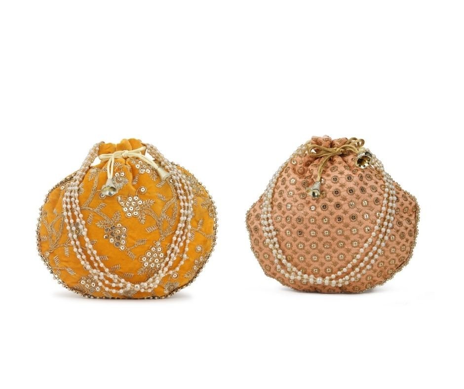 Combo – Designer Embroidered Potli Bag – Yellow & Beige