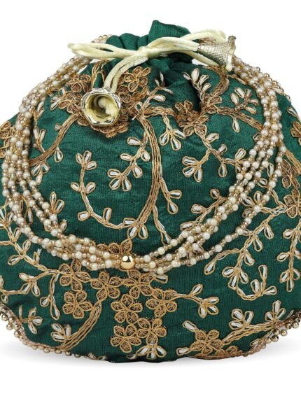 This product is a combo of tow Embellished potli bags having wrist loop 1 main compartment each with drawstring closure. Size & Fit Size of each potli bag : 9 x 9 x 3 Inch (Length x Width x Depth ) Material & Care Fabric Wipe with clean, dry cloth