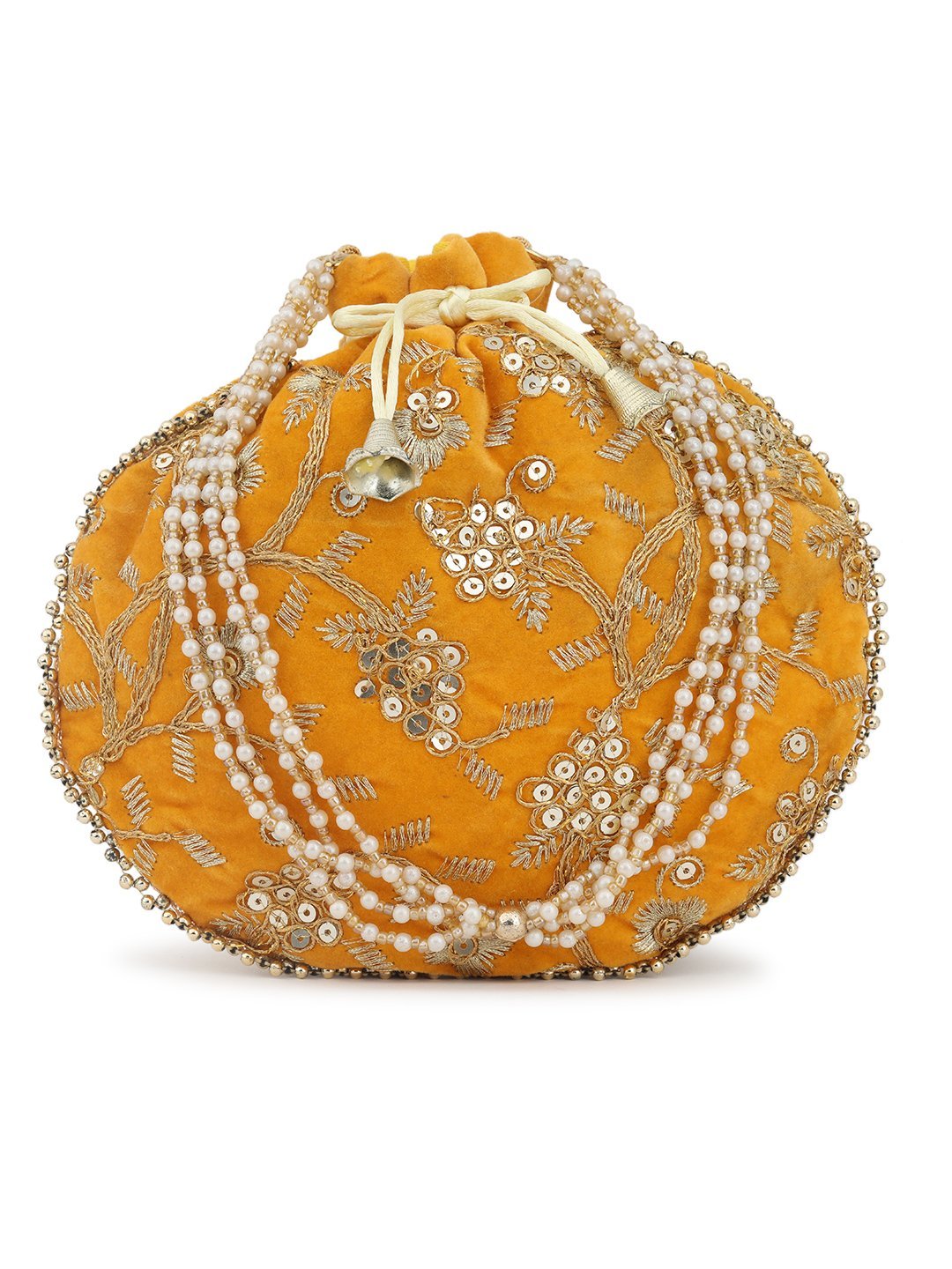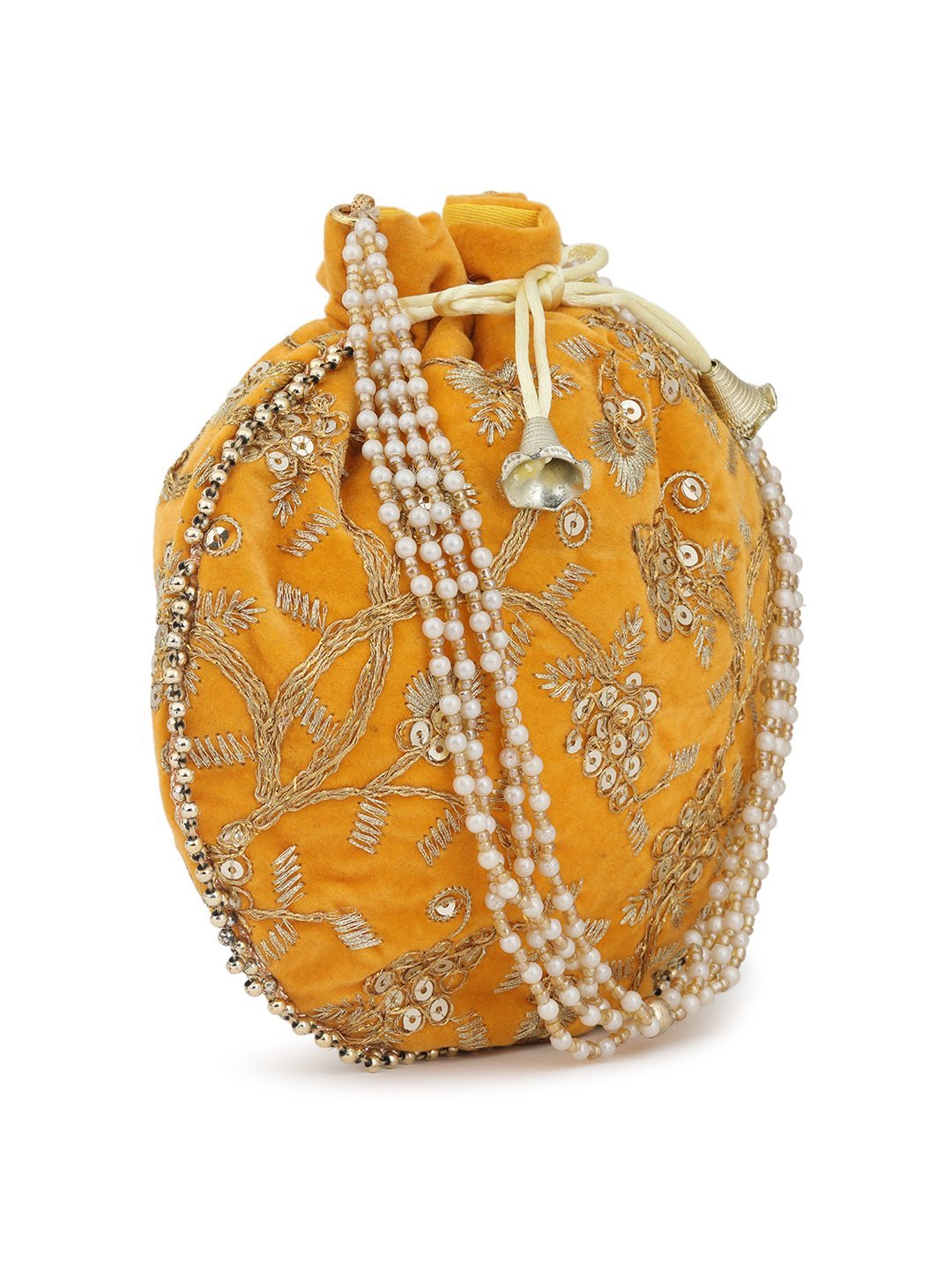 Combo – Designer Embroidered Potli Bag – Golden & Yellow