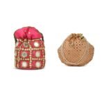 Combo – Designer Embroidered Potli Bag – Golden & Pink