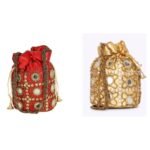 Home W_Bags Potlis PK 2 Combo – Designer Embroidered Potli Bag – Red & Gold