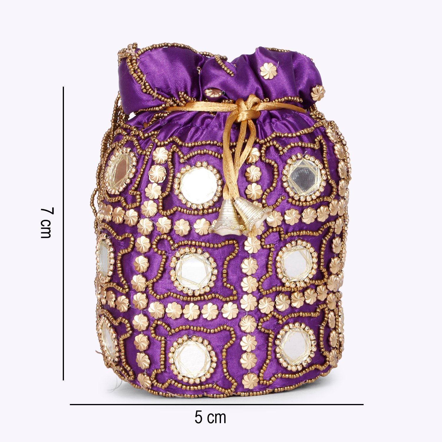 This product is a combo of tow Embellished potli bags having wrist loop 1 main compartment each with drawstring closure. Size & Fit Size of each potli bag : 9 x 9 x 3 Inch (Length x Width x Depth ) Material & Care Fabric Wipe with clean, dry cloth