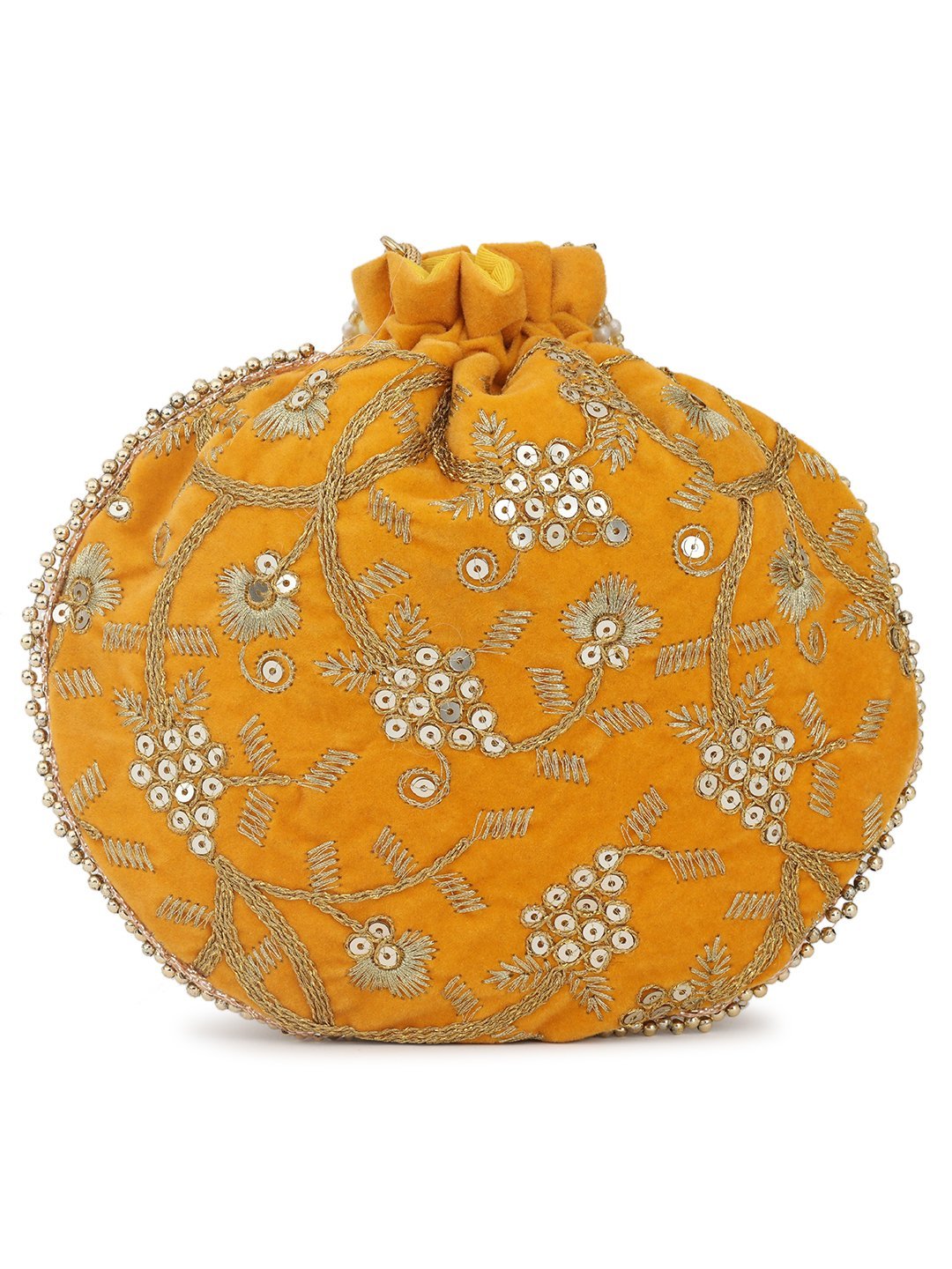 Combo - Designer Embroidered Potli Bag - Yellow & Gold