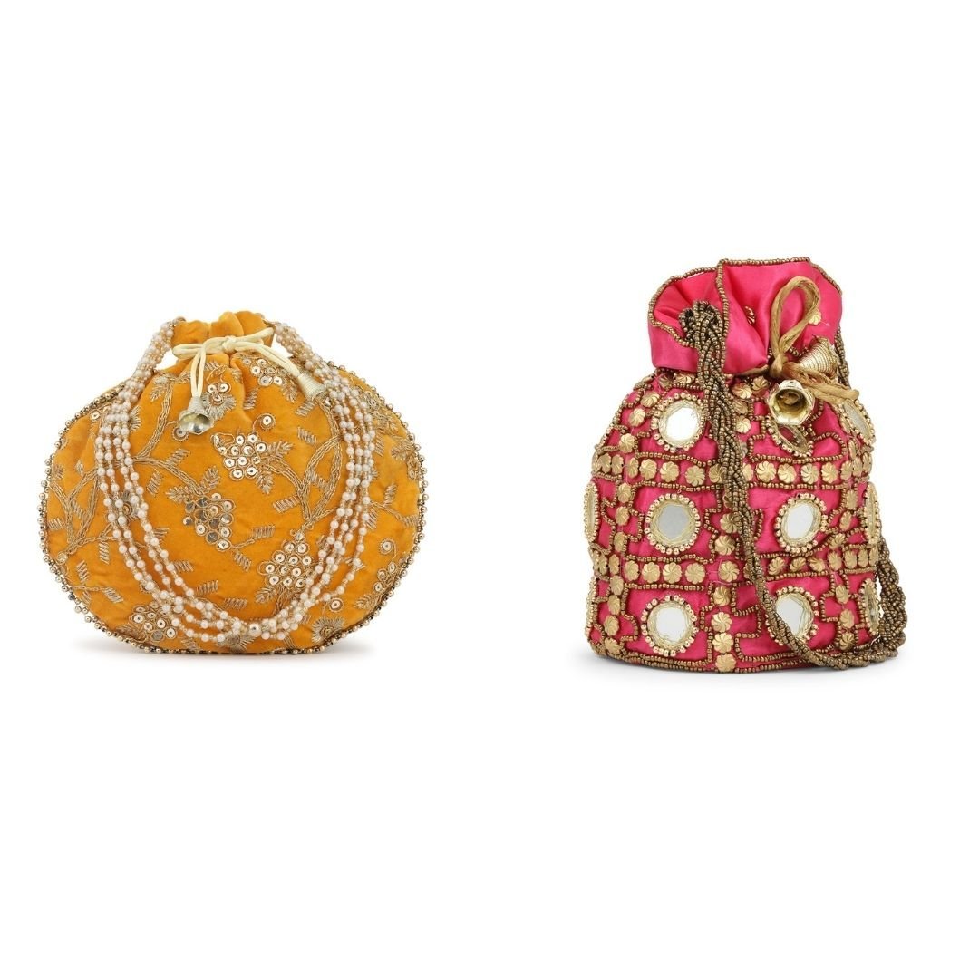 Combo - Designer Embroidered Potli Bag - Yellow & Gold