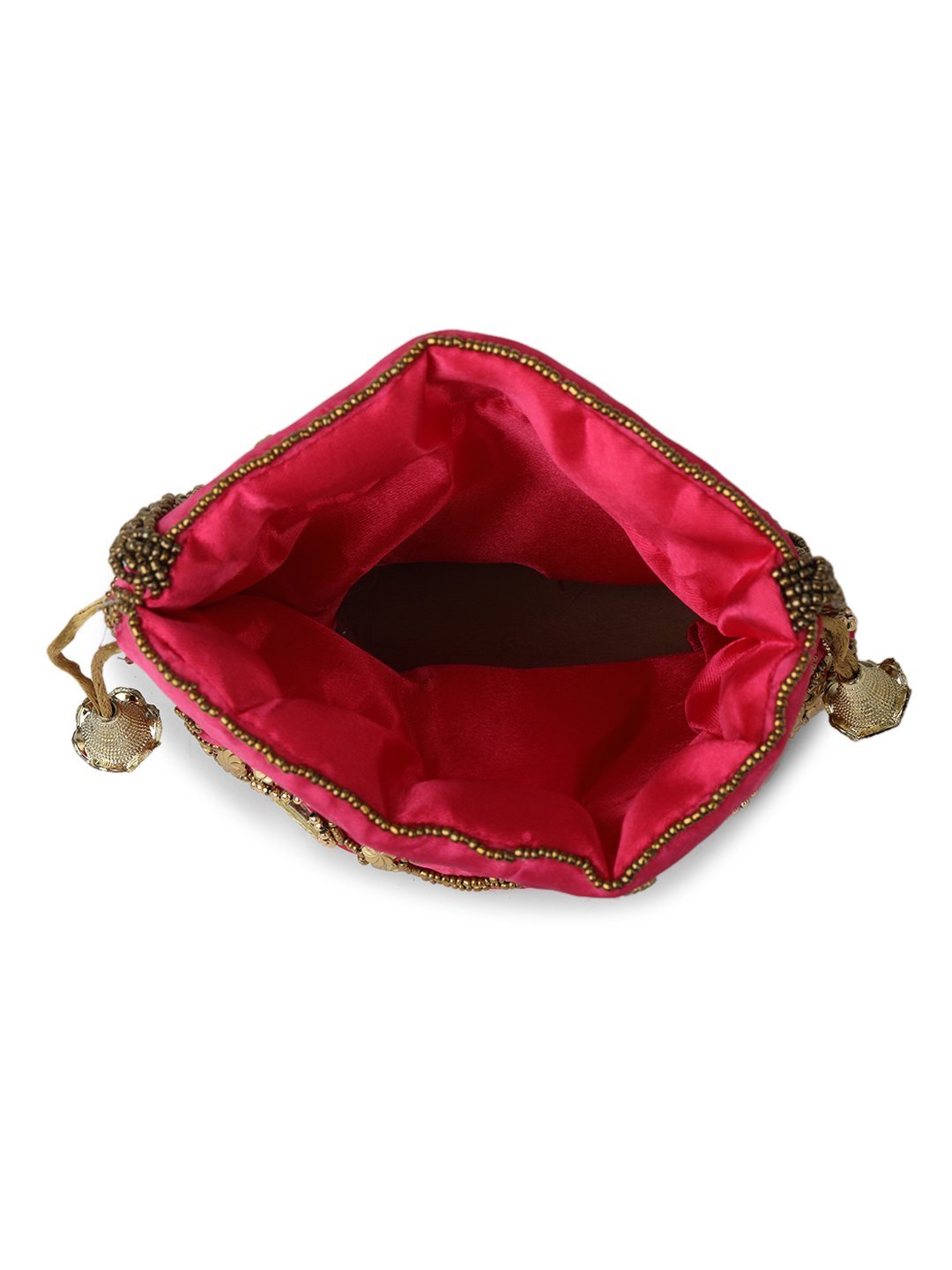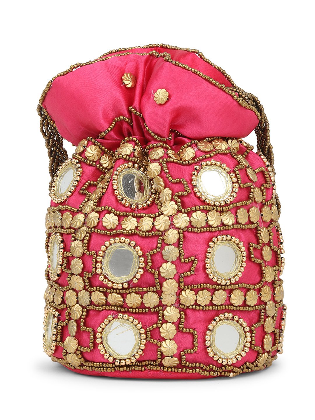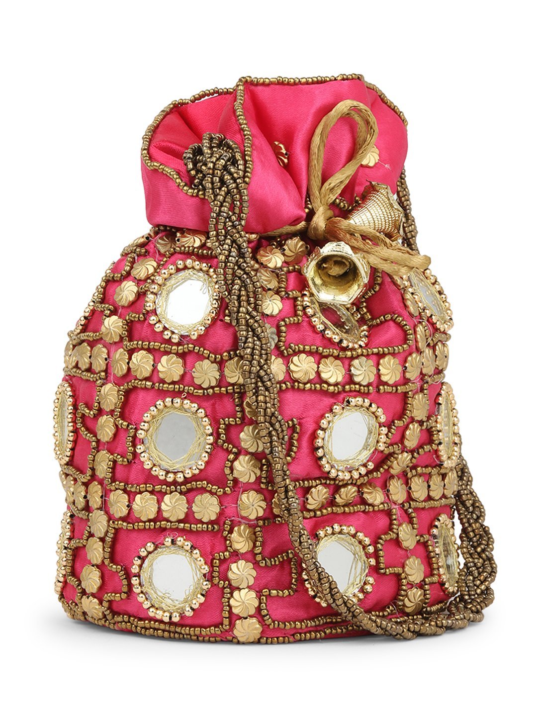 Combo – Designer Embroidered Potli Bag – Golden & Pink
