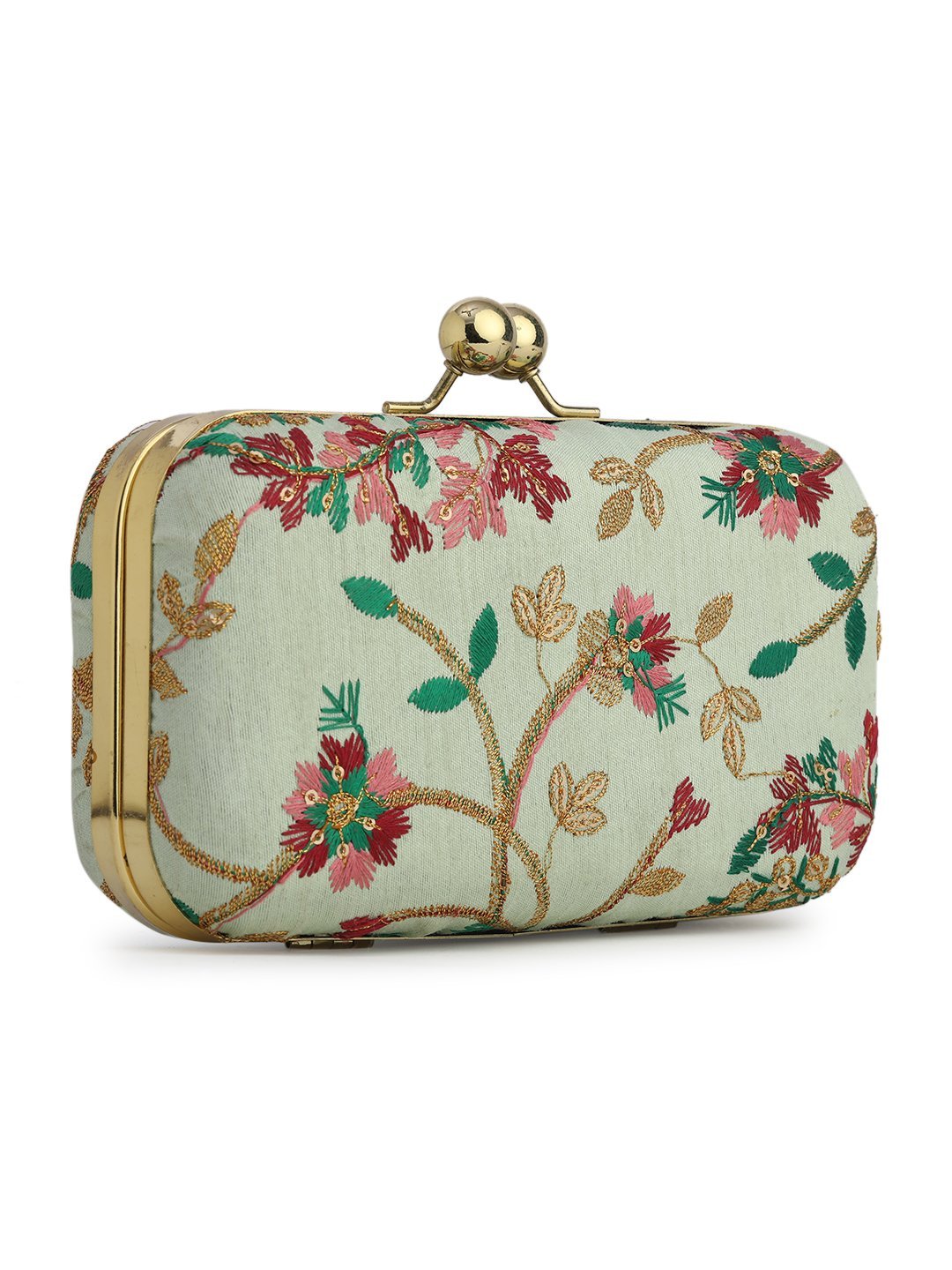 Peach & Green Embroidered Box Clutches For Girls and womens