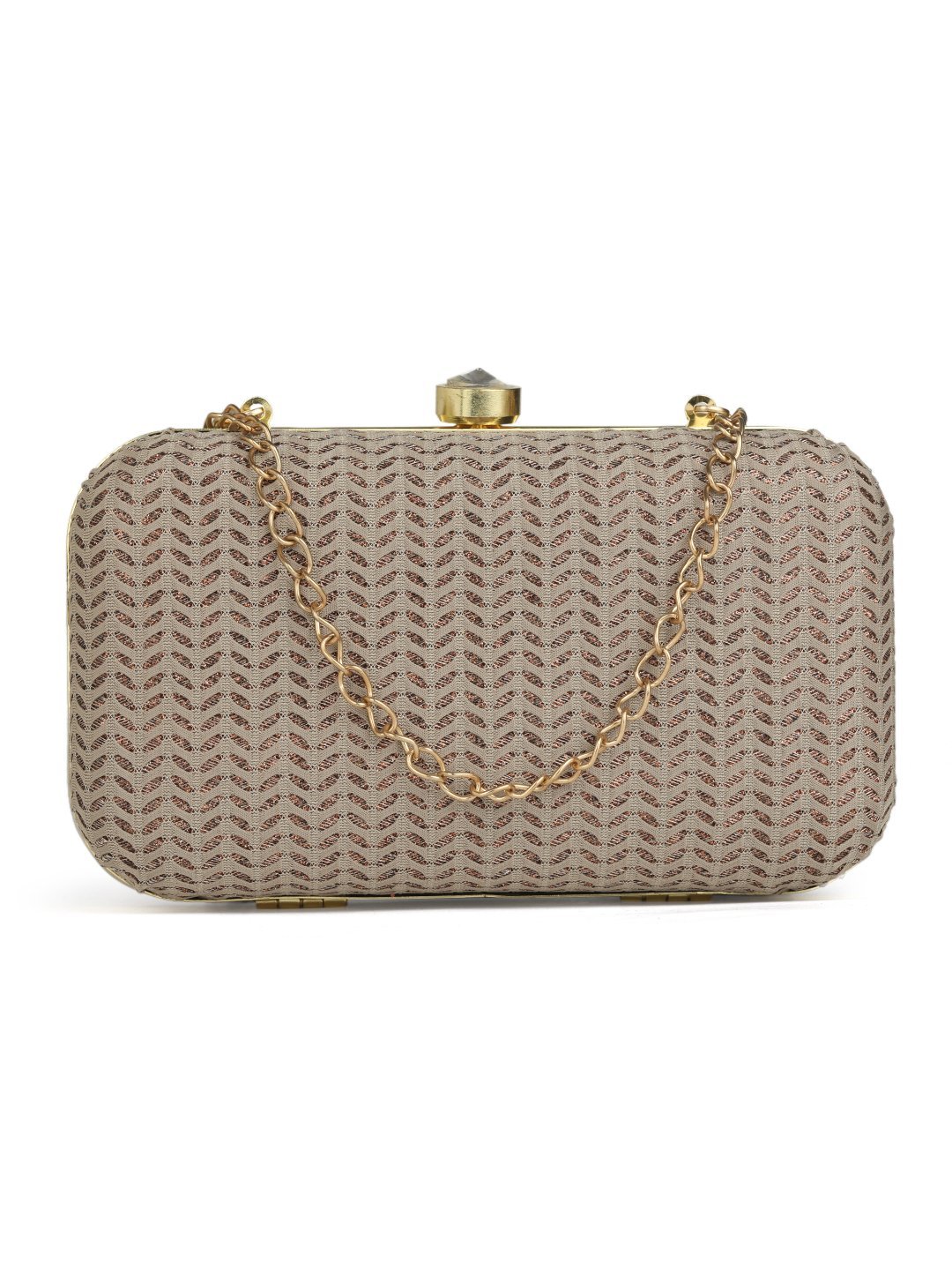 Off White & Gold Embroidered Box Clutches For Girls and womens(01)