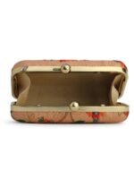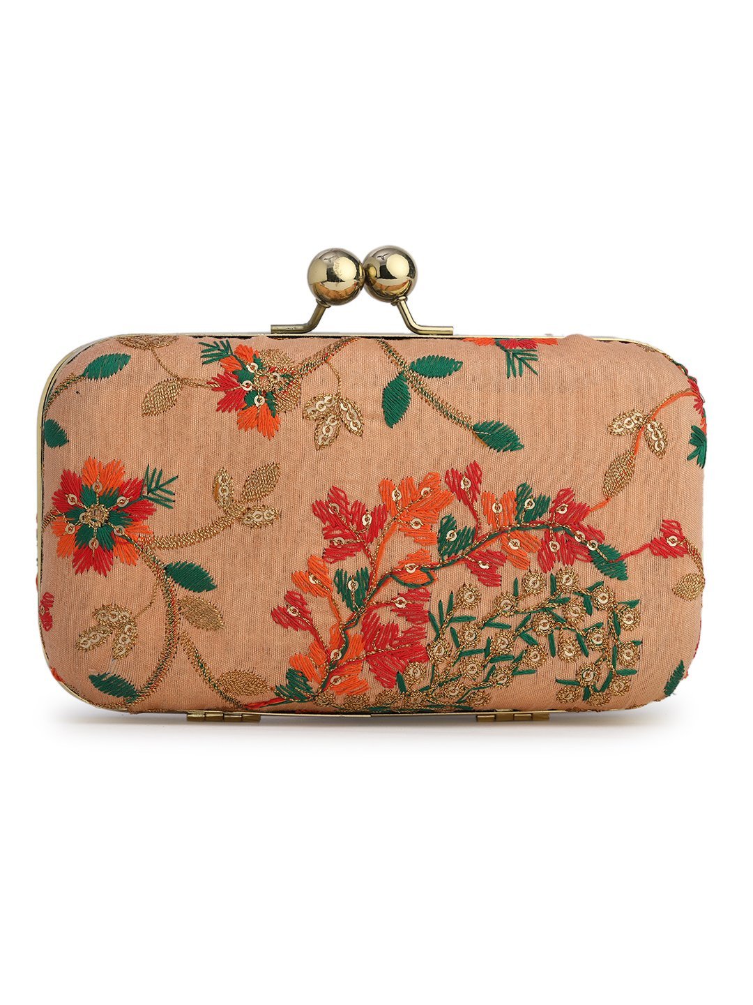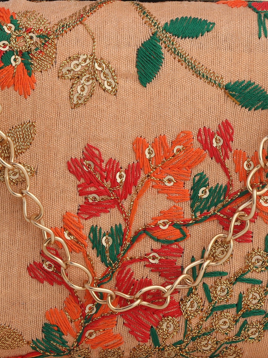 Peach & Green Embroidered Box clutches, Has gold chain shoulder strap, 1 main compartment with twist closure