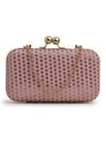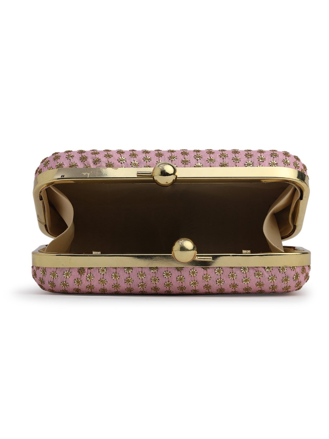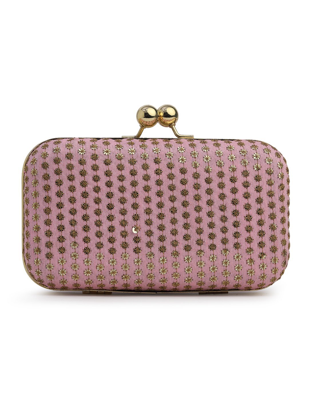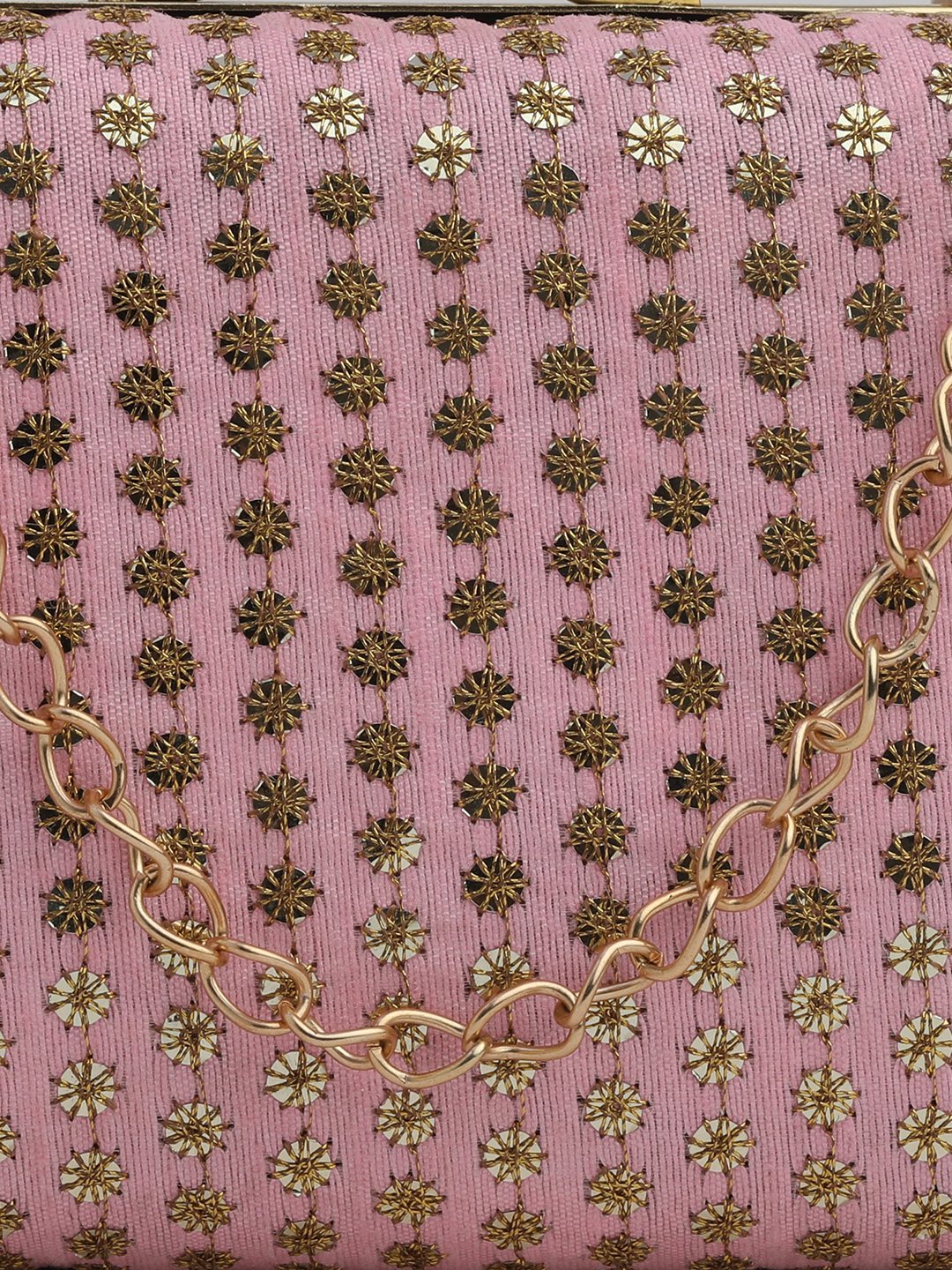 Home W_Bags Clutches Pink & Gold Embroidered Box Clutches For Girls and womens